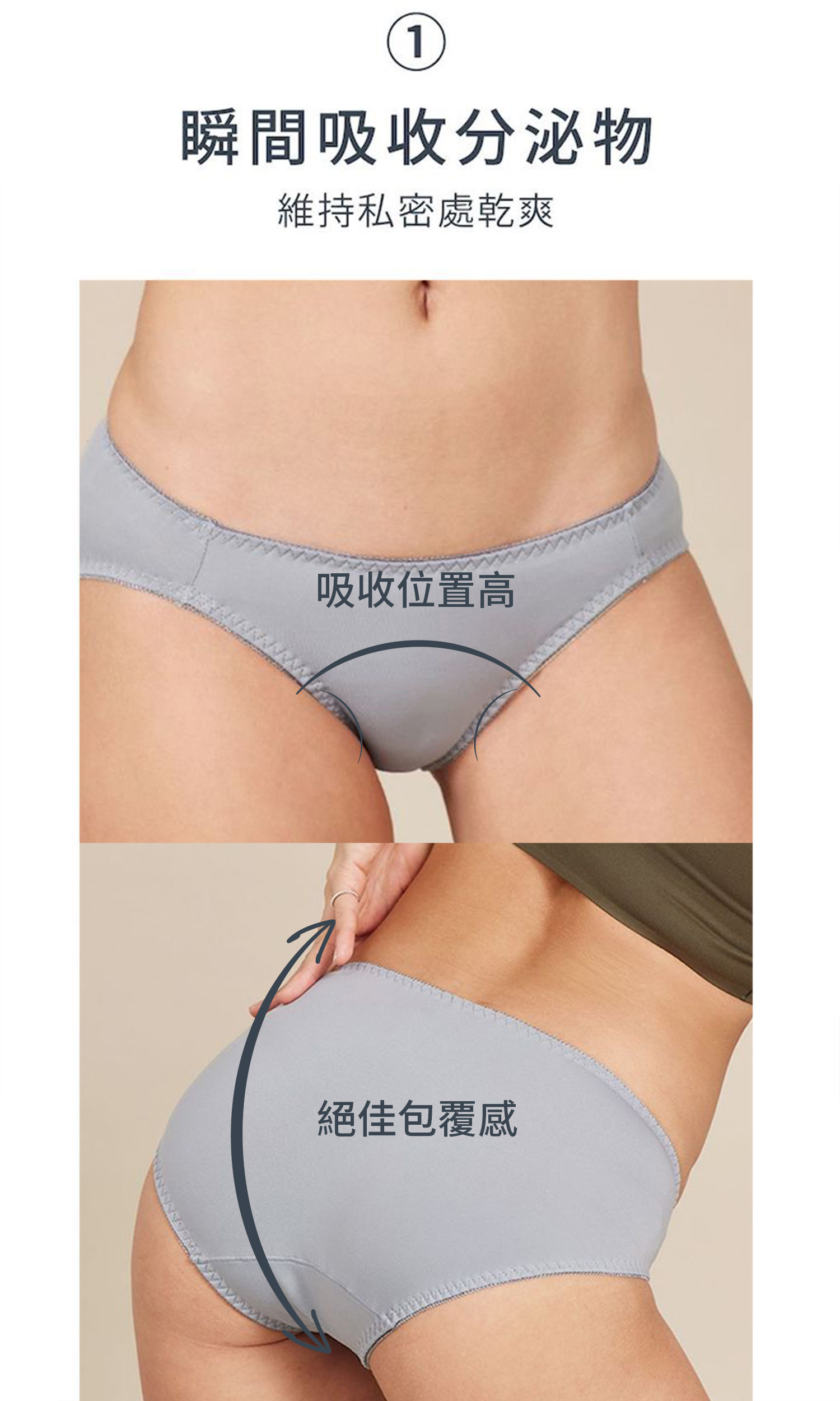 ①瞬間吸收分泌物,維持陰部乾爽,單穿就跟護墊說掰掰