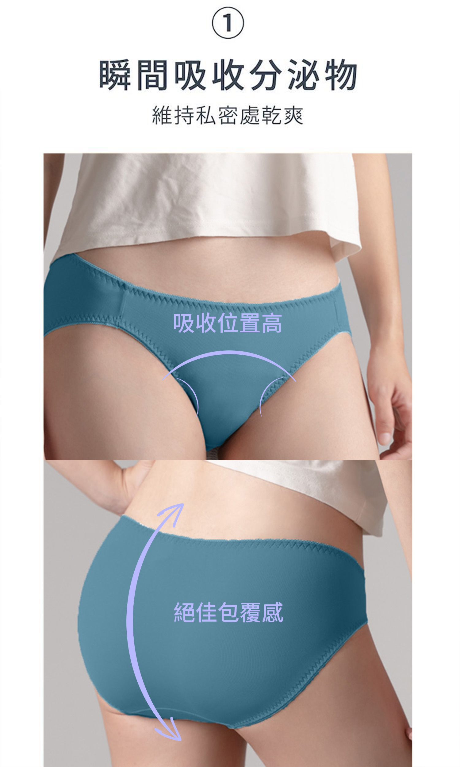 ①瞬間吸收分泌物,維持陰部乾爽,單穿就跟護墊說掰掰