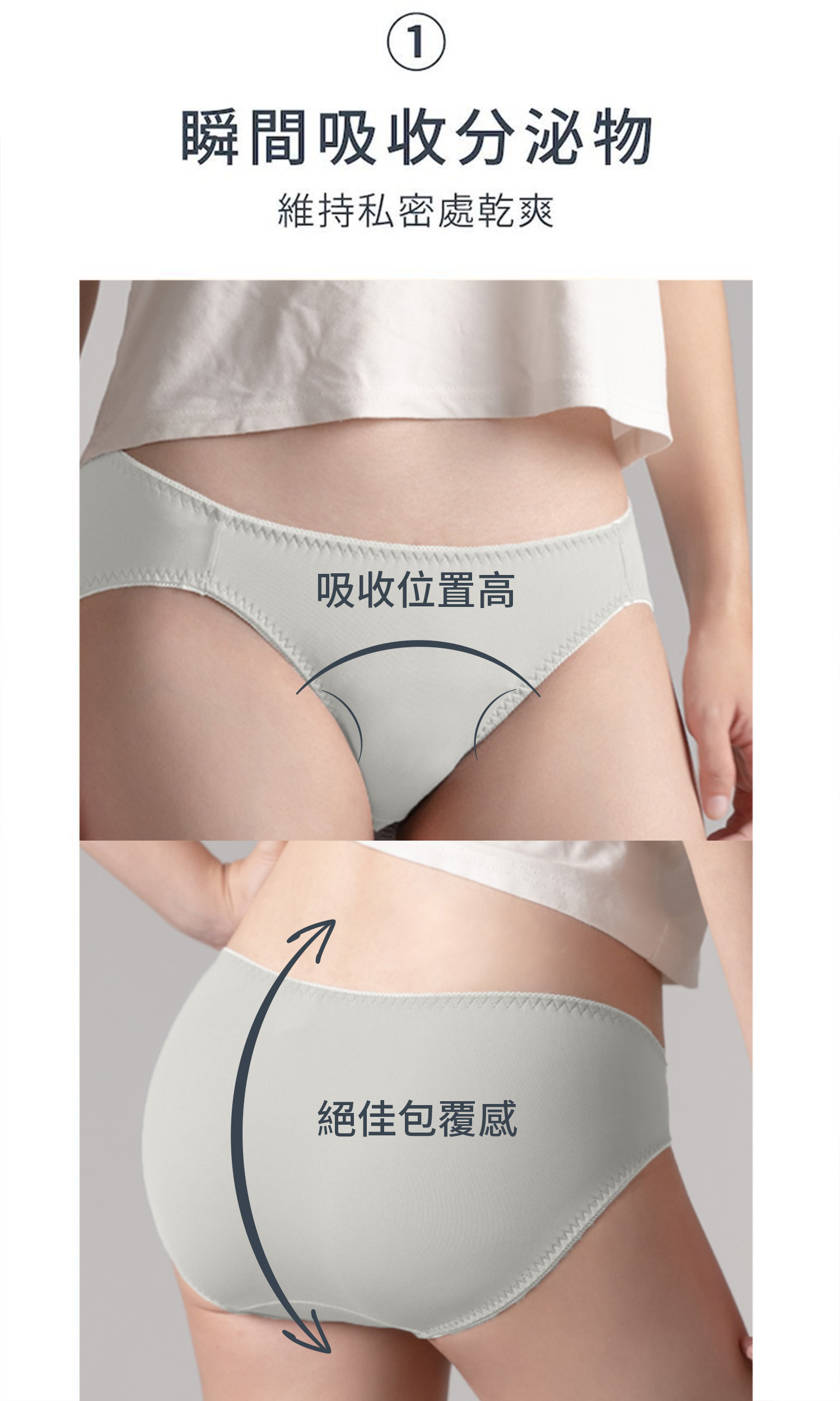 ①瞬間吸收分泌物,維持陰部乾爽,單穿就跟護墊說掰掰