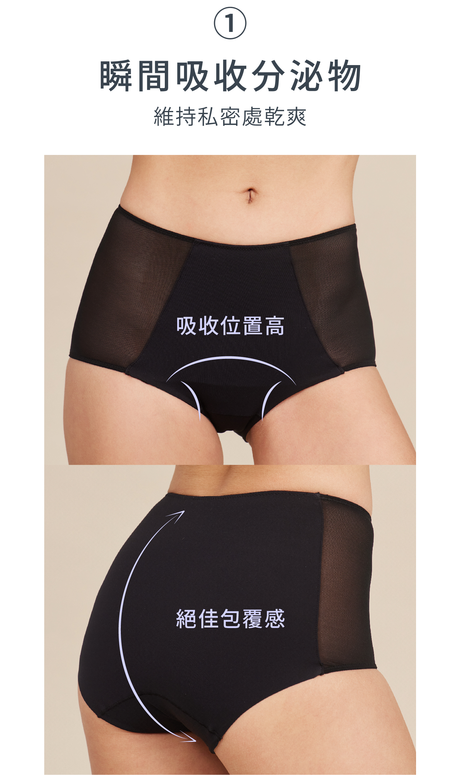 ①瞬間吸收分泌物,維持陰部乾爽,單穿就跟護墊說掰掰