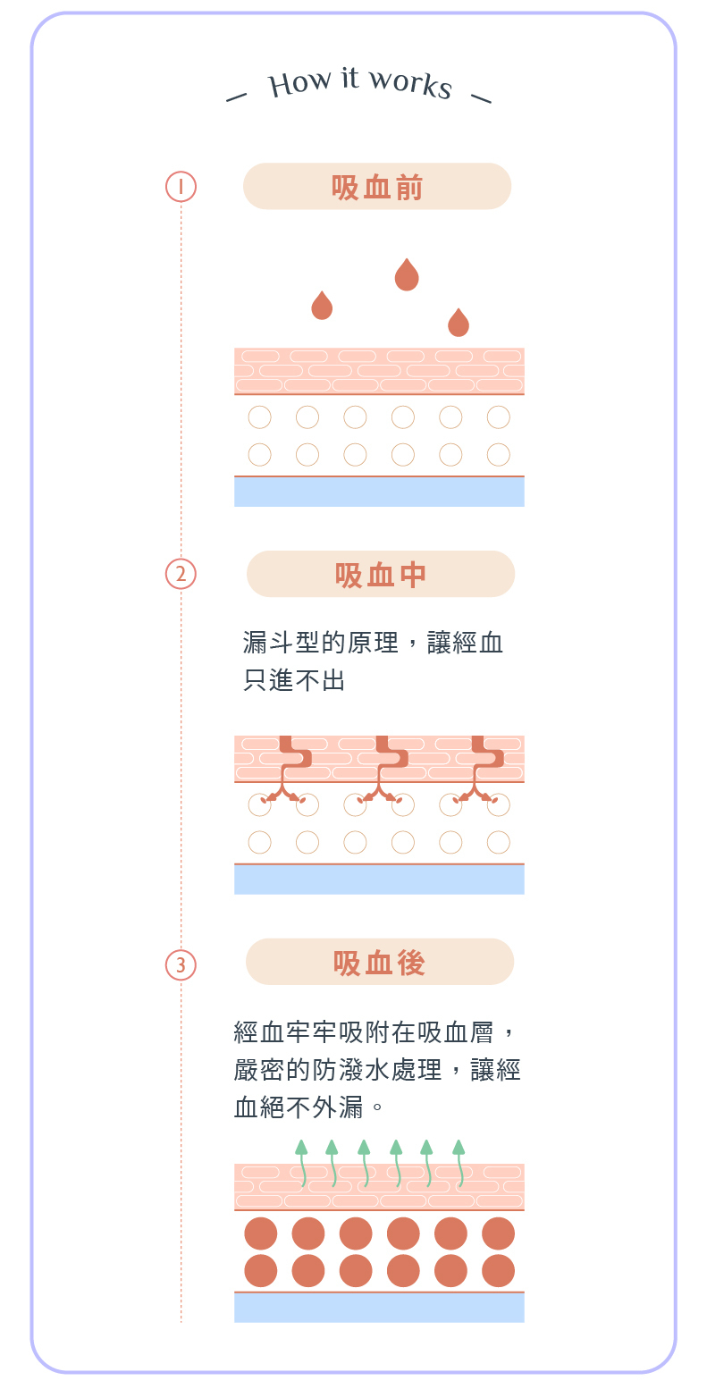⑤ 不變厚,不回滲,維持陰部乾爽